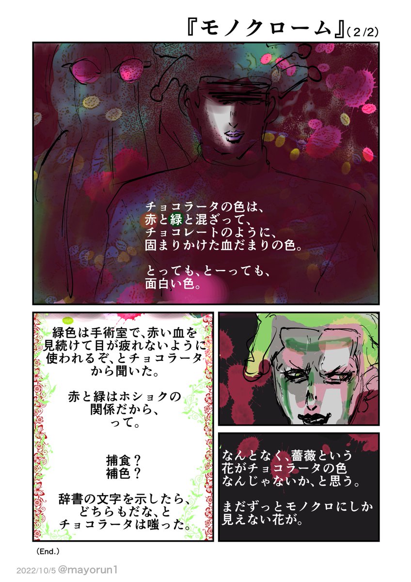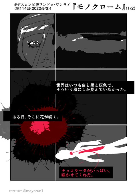 #ゲスコンビ版ワンドロ・ワンライ 遅刻参加『モノクローム』 全2ページ。2時間泥。 そもそも遅刻参加とは?その日時に古いお題を使う事?かもしれませんが、ワイは描けるときに描くんやで・・・何故か内容がギャグじゃなければ暗くなる。 (適当なセコちゃんが2コマ目にいます。)