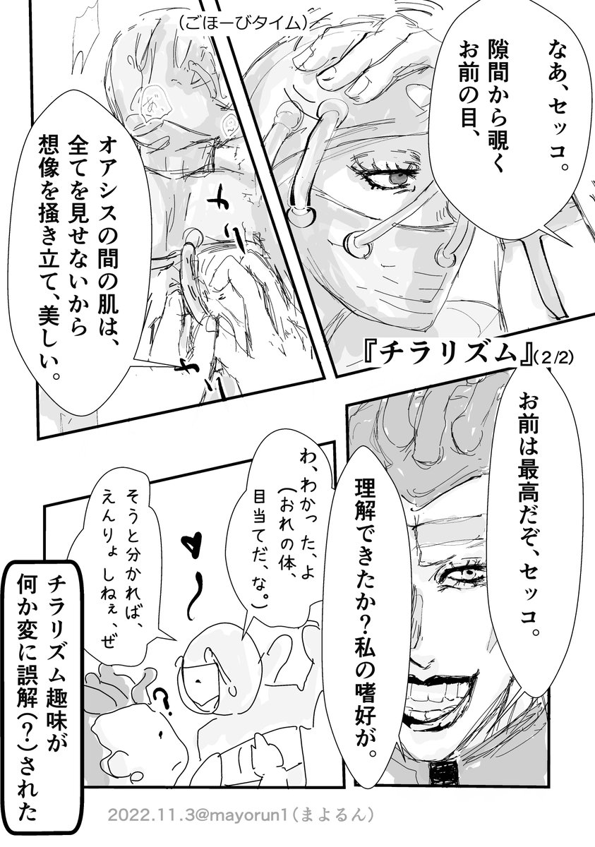 #ゲスコンビ版ワンドロ・ワンライ 祝日だったので...遅刻参加の過去のお題消化中 『きのこ』『チラリズム』謎&捏造設定のギャグ? (チラリズムは没にしようとしてファイル名もbotsuにしてた2ページモノも供養でつけておきます) 1日泥