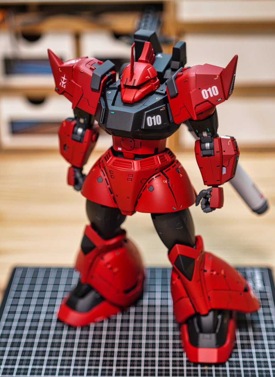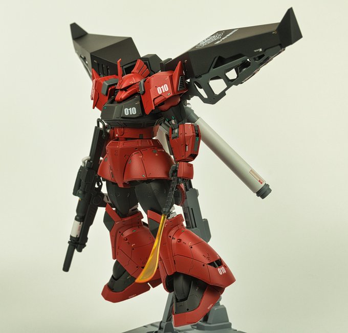 ゲルググ・ウェルテクス完成しましたー! MSVのゲルググキャノンのカラーリングを参考にしてます 動かして撮影してたら艶消しがちょっと剥がれちゃった… #ガンプラ #ゲルググウェルテクス #ガンプラの画像貼るとRTされると聞いて