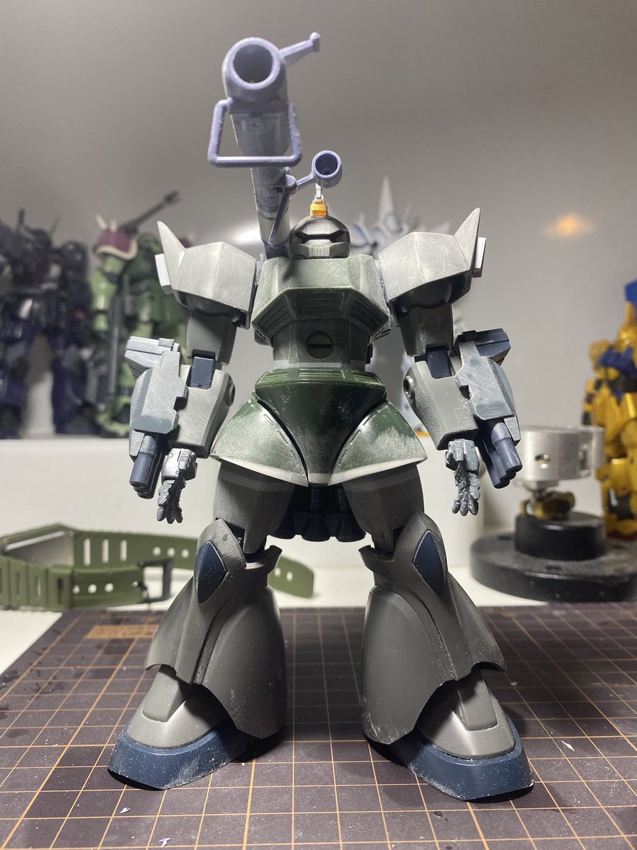:おはよう…やっと完成をさせたぞ。#ゲルググキャノン を。部分塗り、スミ入れ、水転写D、モノアイ、つや消しだ。私はこの機体に乗りたいのでアンテナ付きにした。来年もジーク、ジオン!(下に続く) #ガンプラ #ガンプラの画像を貼るとRTされると聞いて #今年最後のプラモ見せてやる