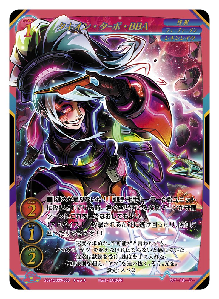 2021年10月29日発売のTCG「ゲートルーラー」第3弾「エース参戦!」にて【タキオン・ターボ・BBA】のイラストを担当させていただきました!よろしくお願いいたします〜!🚀 #ゲートルーラー gateruler.jp