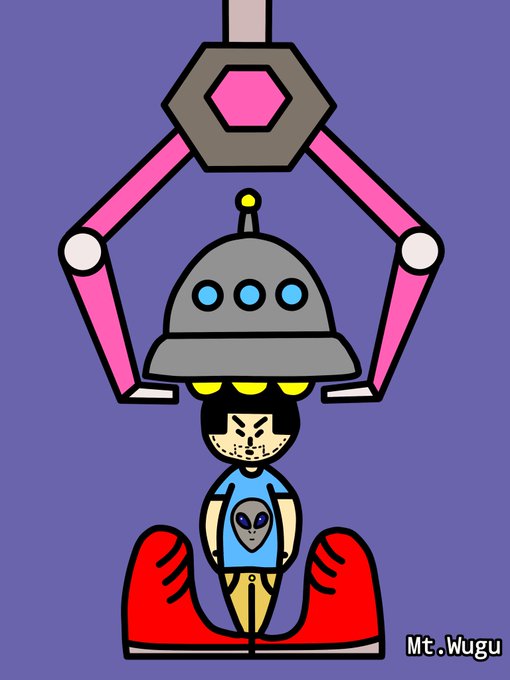 一日一絵シリーズ 丸角一家 息子 UFO おはようございます☀️暑い💦 #ゆるい絵 #ゆるいイラスト #イラスト #アート #UFOキャッチャー #ゲームセンター #art #illustration