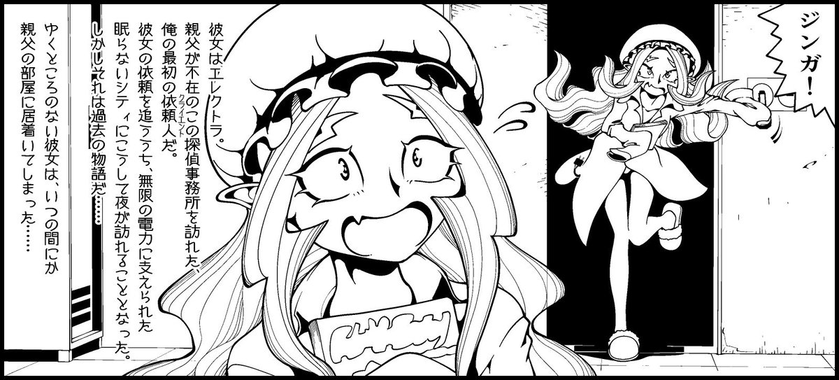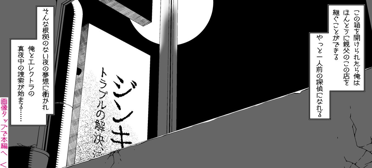 #エアコミケ 「電子 #ゲームブック ジンキド探偵事務所シリーズ」 「1:心臓無しのエレクトラ」長編 「2:親父の箱」謎解き に続き 最新刊3巻最終調整中! 定額読み放題サブスク #KindleUnlimited に対応しています! ジンキド探偵事務所シリーズ紹介頁→kurobokuya.blog.fc2.com/blog-entry-146…