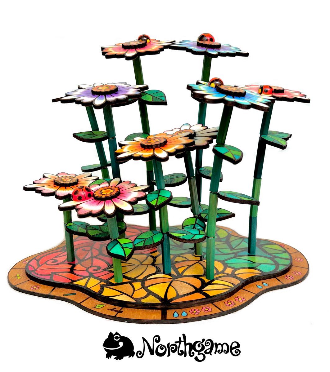 ゲームマーケット2022秋のカタログ原稿できました! ノスゲム新作【ジニアフローラ】。 皆で協力してお花を育てるゲームです。育て方はダイスアクション!水、新芽、お花、葉っぱ、茎とバランス良く育てましょう。てんとう虫は害虫を退治してくれるので大事なポイント!#ゲームマーケット2022秋