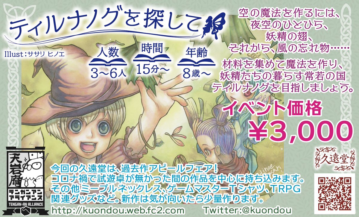 ゲムマのサークルカット入稿したーっ! 今回は過去作アピールフェアです! 試遊卓が復活したので、是非『ティルナノグを探して』とか『ジェマカルテ』とか、コロナ禍で宣伝の機会が少なかった作品を見ていただきたい…! 新作は…気が向いたらね…(;´д`) #ゲームマーケット2022秋 #ゲムマ2022秋
