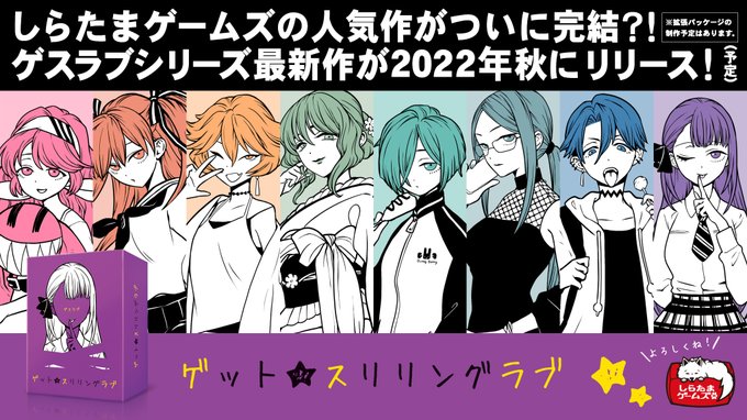 サークル主より先に宣材画像をアップするぞ! ゲスラブシリーズ4作目、よろしくお願いいたします! なお今回からゲスラブシリーズ(拡張を除く)のイベント頒布価格が¥2000になります。 #しらたまゲームズ #ゲスラブ #ゲットスリリングラブ #ゲームマーケット2022秋