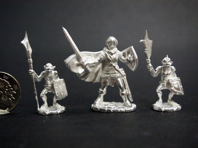 29日の #ゲームマーケット2022秋 で発売するミニチュアゲームの新造系の #ミニチュア、メタル抜けました。ゲームの駒として、冒険者とゴブリン・ゴブリンの隊長、の3体が付きます。 #ゲムマ 詳細はこちら→auroramodel.blog.ss-blog.jp/2022-10-12?166…