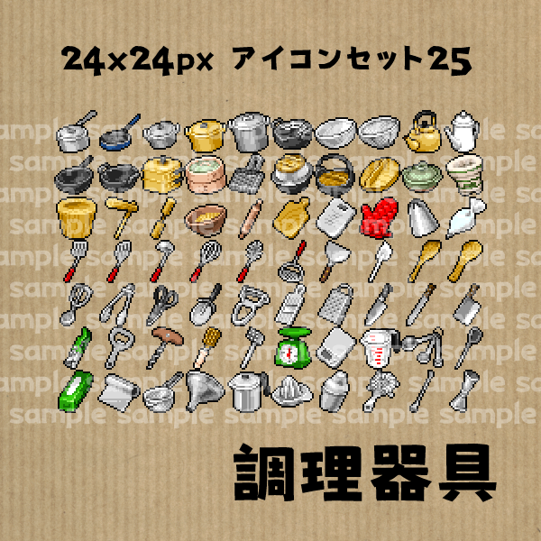 アイコンセット 25 ~調理器具~ DLsiteとBoothで公開しました! BOOTH syuironoitokuzu.booth.pm/items/4202412 DLsite dlsite.com/home/work/=/pr… #ドット絵 #ゲーム素材 #アイコン素材 #pixelart