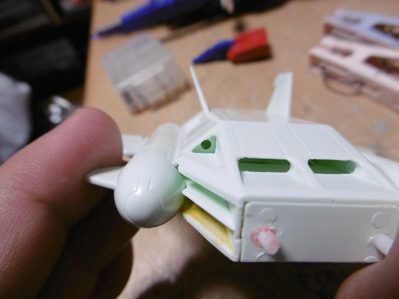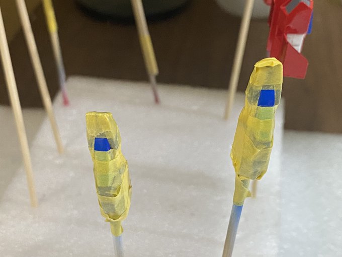 #ガンプラ #ガンプラはどんな自由な発想で作ってもいいんだ #ガンプラの画像貼るとRTされると聞いて #旧キット #コアブースター #コアファイター #カスタムペイントshaftD #模型活動 今日はグレーになる部分をマスキングして塗っていきました。
