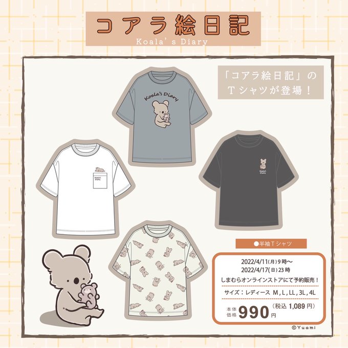 🌷しまむらオンラインストアにて『コアラ絵日記』のレディース半袖Tシャツ・ルームウェアが販売されます🌷 よろしければ見てみてください🐨 販売期間:4/11(月)9:00~4/17(日)23:00 オンラインストア:shop-shimamura.com/?b=shimamura ※売り切れの際はご了承ください #コアラ絵日記 #しまむら #shimamura