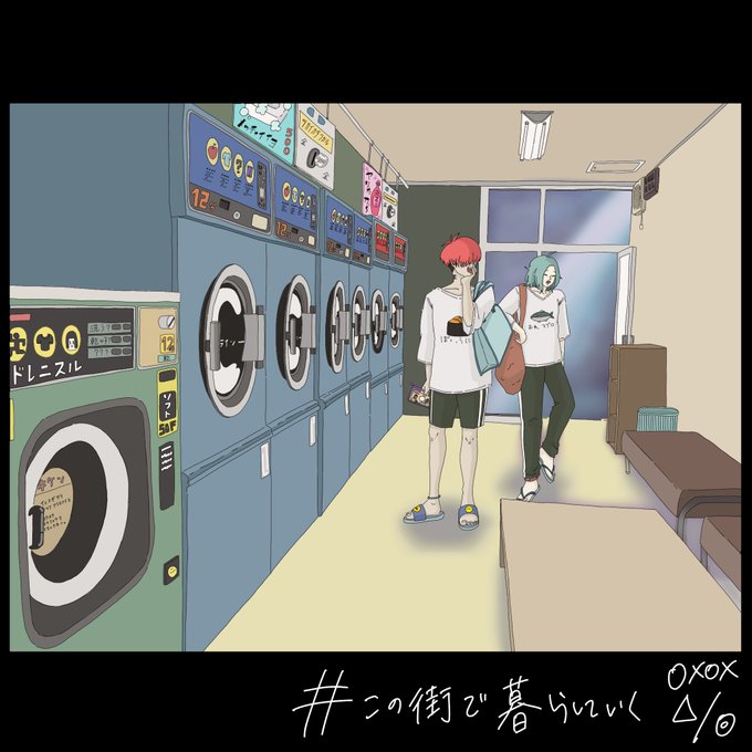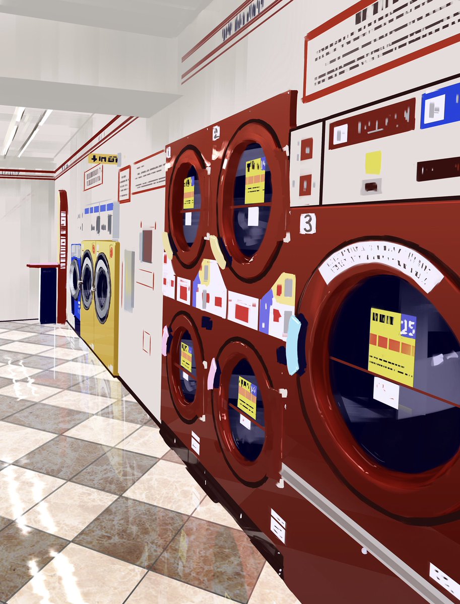 Laundry time #イラスト #いらすと #イラストレーター #イラストレーション #イラスト好きな人と繋がりたい #絵 #絵描き #絵描きさんと繫がりたい #お絵かき #コインランドリー #アート
