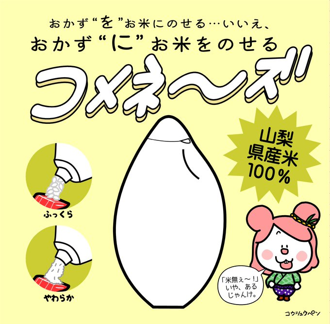 今日は #米の日 🌾🍚 お米が無い!もうちょっと食べたい!一口だけでも! そんな時には… 「コメネーズ」 炊き方は「ふっくら」「やわらか」。 「2合」「5合」と量をお選びいただけます🌾🍚 #コウシュウペンの空想オフィシャルグッズ #イラスト #illustration