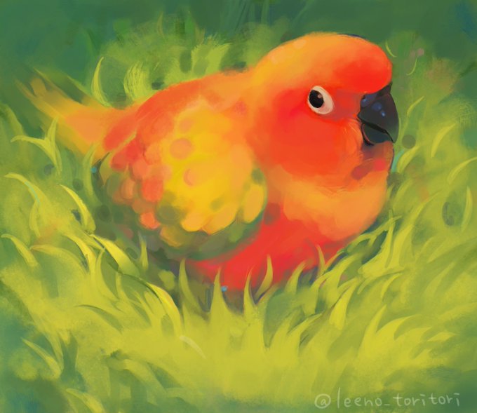 🧡❤️💚 鳥好きさん達と仲良くしたいです!! コメントやいいね本当に嬉しいです🐥 #コガネメキシコインコ #イラスト練習中 #鳥好きさんと繋がりたい #インコ #油絵 #デジタルイラスト #鳥達のTwitter展覧会 #春の創作クラスタフォロー祭り