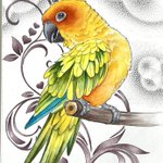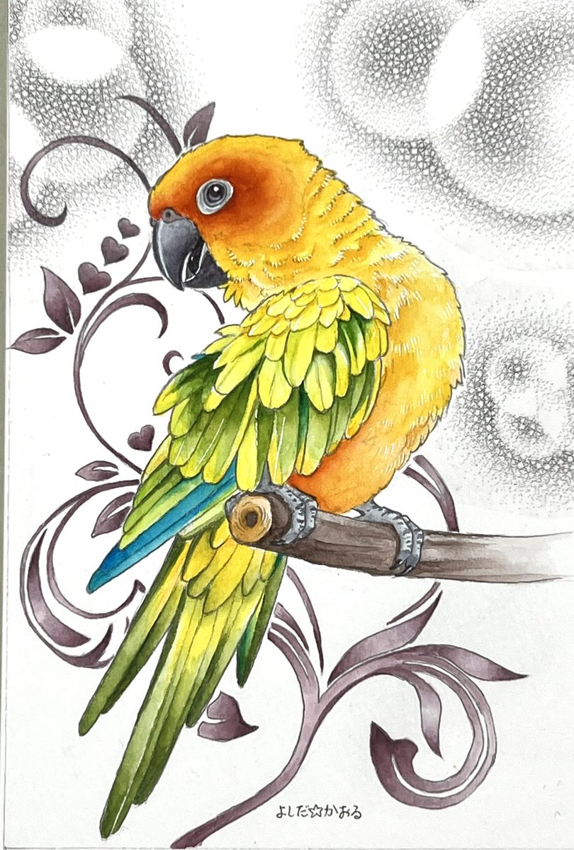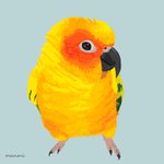 コガネメキシコインコ グラデーションの鳥さんの着色が難しく、 粗目な仕上がりに😂 毎日1時間の筋トレ(=描画)継続中です💪🏻✨🐦 #コガネメキシコインコ #Aratingasolstitialis #SunParakeet #bird #illustration #お絵描き #イラスト #お絵描き練習 #毎日お絵描き