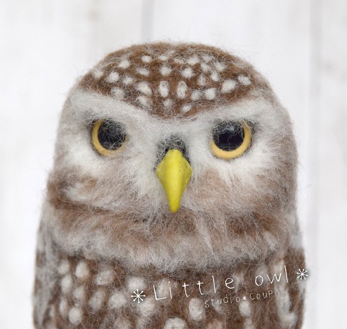 コキンメフクロウさん 画像リニューアルしました😃 コキンメフクロウ #minne minne.com/items/27742252 #羊毛フェルト #ニードルフェルト #フクロウ #コキンメフクロウ #littleowl #handcraft #minneで販売中 #minne #felt #feltingneedle #felting #creemaで販売中