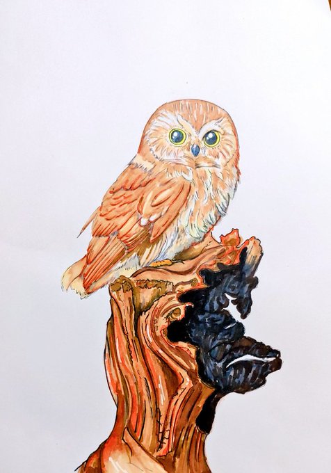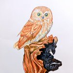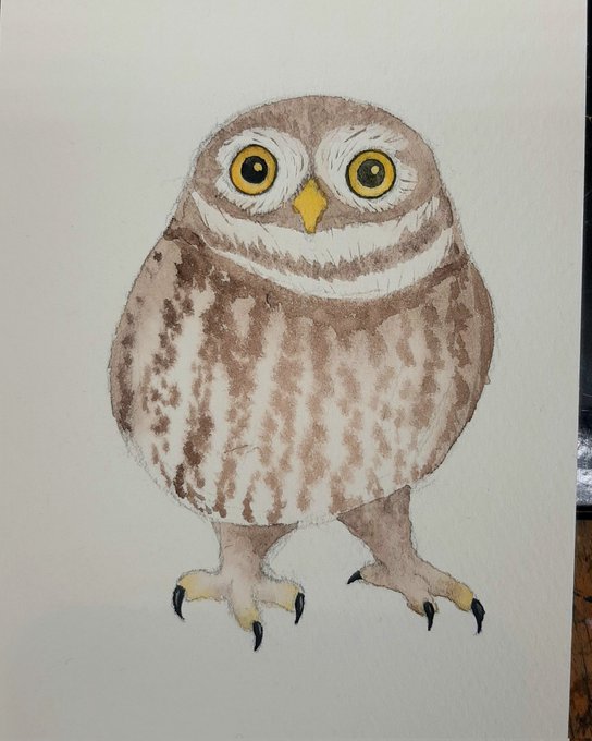 2枚目はコキンメフクロウ。 どれくらい水分が残ってるとどれくらい滲むのかが少しずつわかってきた気がします。 #ガモウスタジオ #水彩 #水彩画 #コキンメフクロウ #watercolor #littleowl