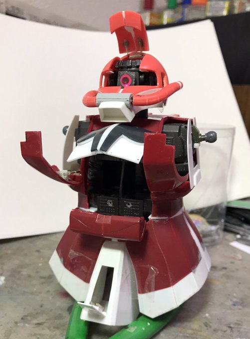 41年前にサンタさんから貰ったメカニックザクを再生しています。 やっとコクイットカバー😁とフンドシのハッチを可動化しました。 ヒンジ周りやハッチ裏は後ほどデコレートします。 小学生の頃に塗った少佐どうしよう… #コクイットカバーの開いた状態を貼る #メカニックモデル #ガンプラ