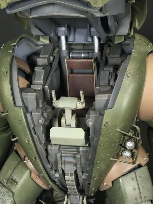 #コクイットカバーの開いた状態を貼る タグに乗り遅れましたが投稿です! 自分あまりコクイットまわりって作らないので、カバーが開いた画像はこれだけです。木製MSコクイットカバーのパカパカ見てください