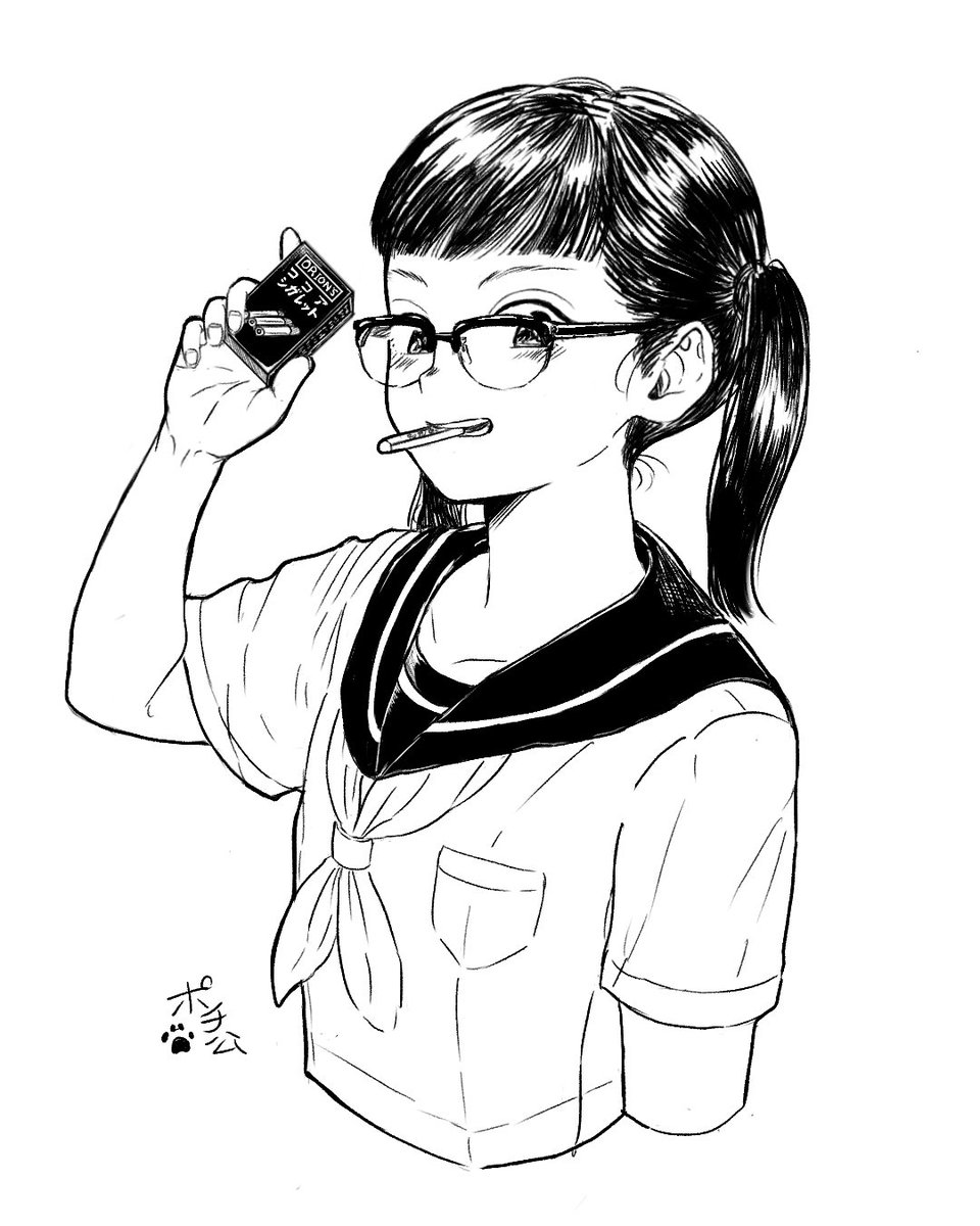 ココアシガレット モノクロイラストはまだまだ練習が必要です(^_^;) #イラスト #イラスト好きさんとつながりたい #イラストレーターさんと繋がりたい #ココアシガレット #女の子イラスト #セーラー服 #モノクロイラスト #メガネ女子
