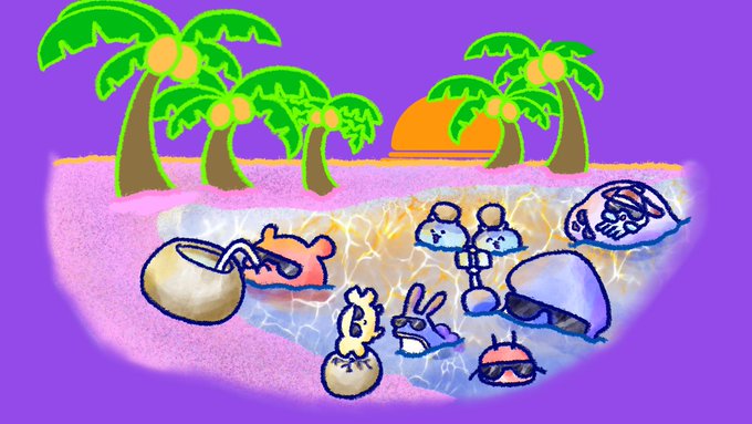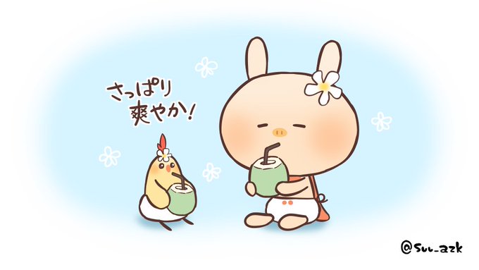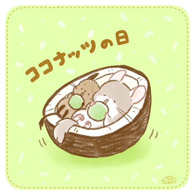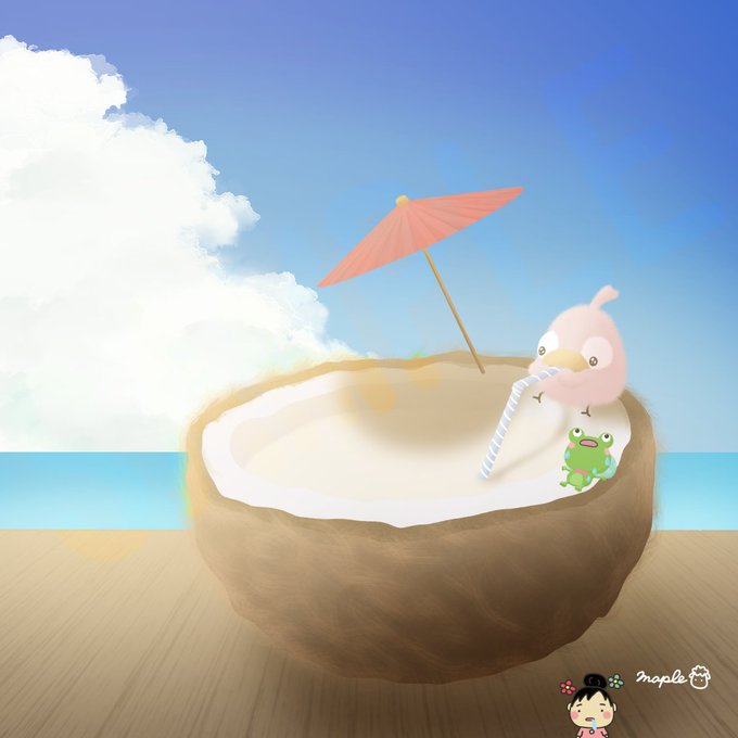 おはようございます!! #ココナッツの日 🐘「美味しいなぁ💕」 🐔「モットイル、、?」 😺「危ないよ、、!!」 今日も素敵な土曜日を〜😉 #イラスト好きな人と繋がりたい #絵描きさんと繋がりたい #みんなで楽しむTwitter展覧会 #イラスト