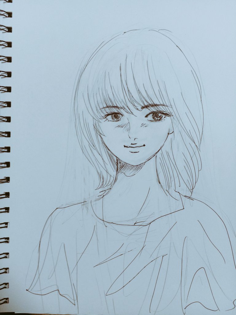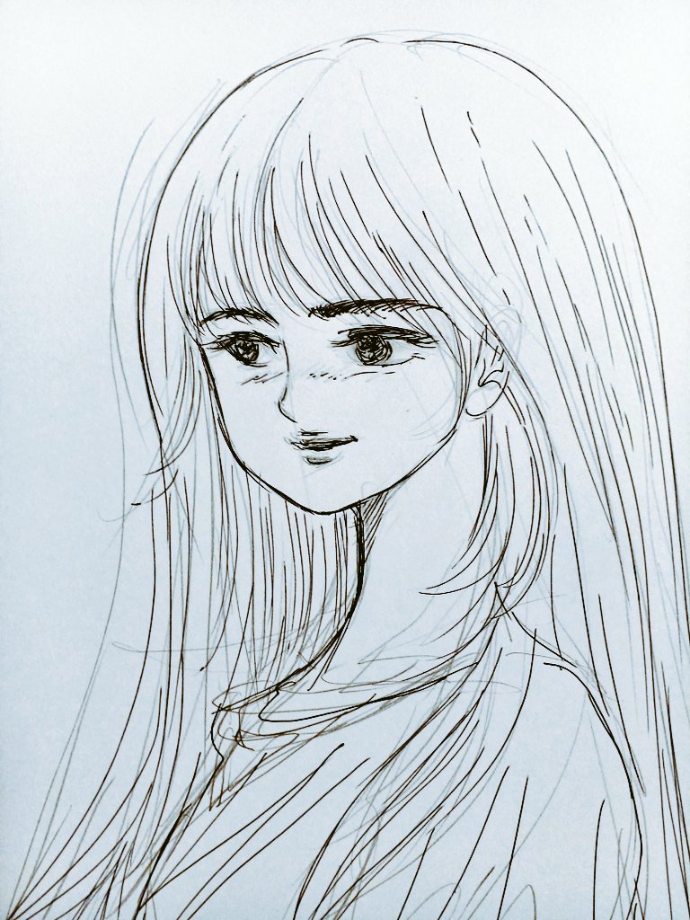 ラフ画のみです(;'∀') バストアップの線をもとに 全身を描こうと思いましたが、思いのほか あおりでしたのでうまくバランスがとれず この辺で。今日中に線画を完成させることは できませんでした(;^ω^) タグとちょっと違う~ #ココミン #このタグを見た人はラフ画とその完成絵を見せる