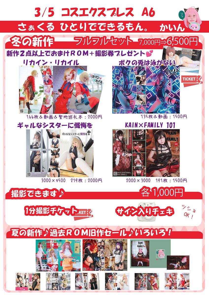 3/5(日)12:00〜17:00 錦商会館 📍東京都中央区日本橋富沢町8-10 コスエクスプレス #コスエク 出ます! 詳細⏩cos-express.net/to_guest サークル名:ひなたちゃんち スペース:4階【G-7】(画像2枚目/♡印のところ)です 既刊、撮影券、チェキなどあります! お品書き&衣装お待ちを🙇♀️ 会いにきてねー💗