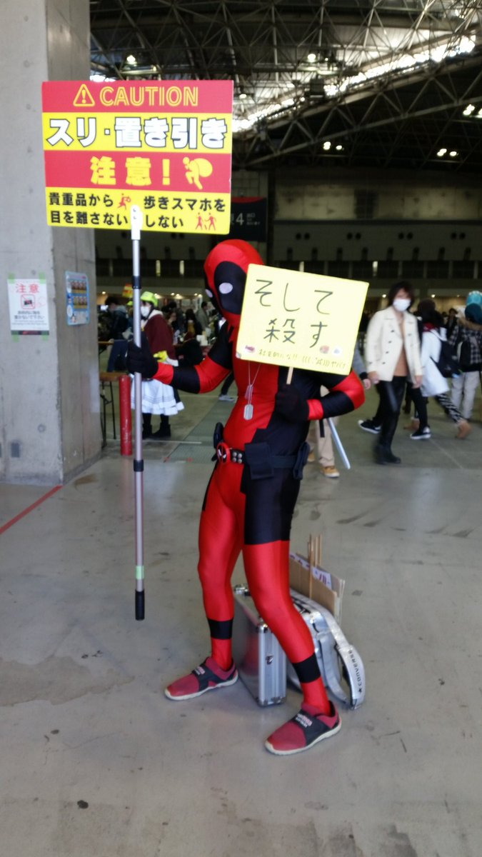 #コスプレイヤーは経験したことしか言えない コミケにて スタッフ「デップー( ̄□ ̄;)!!」 俺「貸して」 スタッフ「「「ワハハハそれはずるい!撮影するー」 スタッフ「デップーなら殺りかねない」