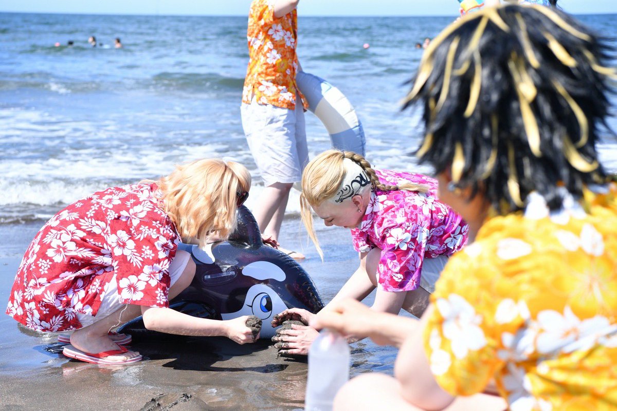🐬🏝Cosplay / コスプレ オフショット ケンチンと一緒に城を作った。 それを一虎は涼しい顔で見守っていた 砂団子を投げて遊んだ #東卍の夏休み2022 #コスプレ大海水浴 #ぐみここす Photo TOMOさん (@TOMO_tj ) メンバーはツリーで!