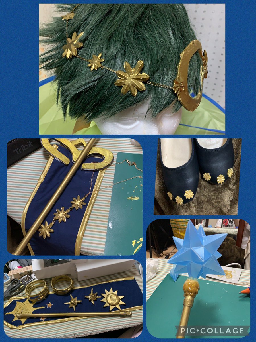 めっちゃ頑張ってアクセサリー類作ったから見て見てする🥺🥺🥺 刺繍したら時間かかるの分かってるのにやれば映えると思ってさ。← 靴にもちゃんと星つけた✩°。⋆⸜(*˙꒳˙* )⸝ステッキも頑張ったよ(๑•̀ㅂ•́)و✧ #香蘭の制作 #コスプレ手作り #コスプレアクセサリー