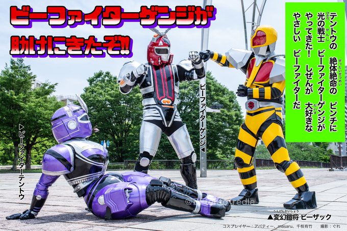 ⚠️コスプレ注意⚠️ お願いして撮ってもらったシーンに文字入れて児童書風にしてみました✏️人とか看板も頑張って消したぞー!! 📸ぐれさん@osa_gekka #コスプレ造形 #ビーファイターカブト