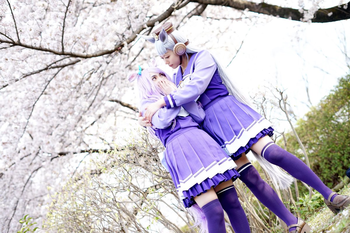 ___________________ ゴ「大丈夫かマックイーン」 マ「え、ええ………」 ___________________ (実際は寒そうなマックちゃんのことをさすっていただけ) #コスプレQ2022桜イベント