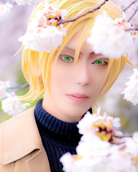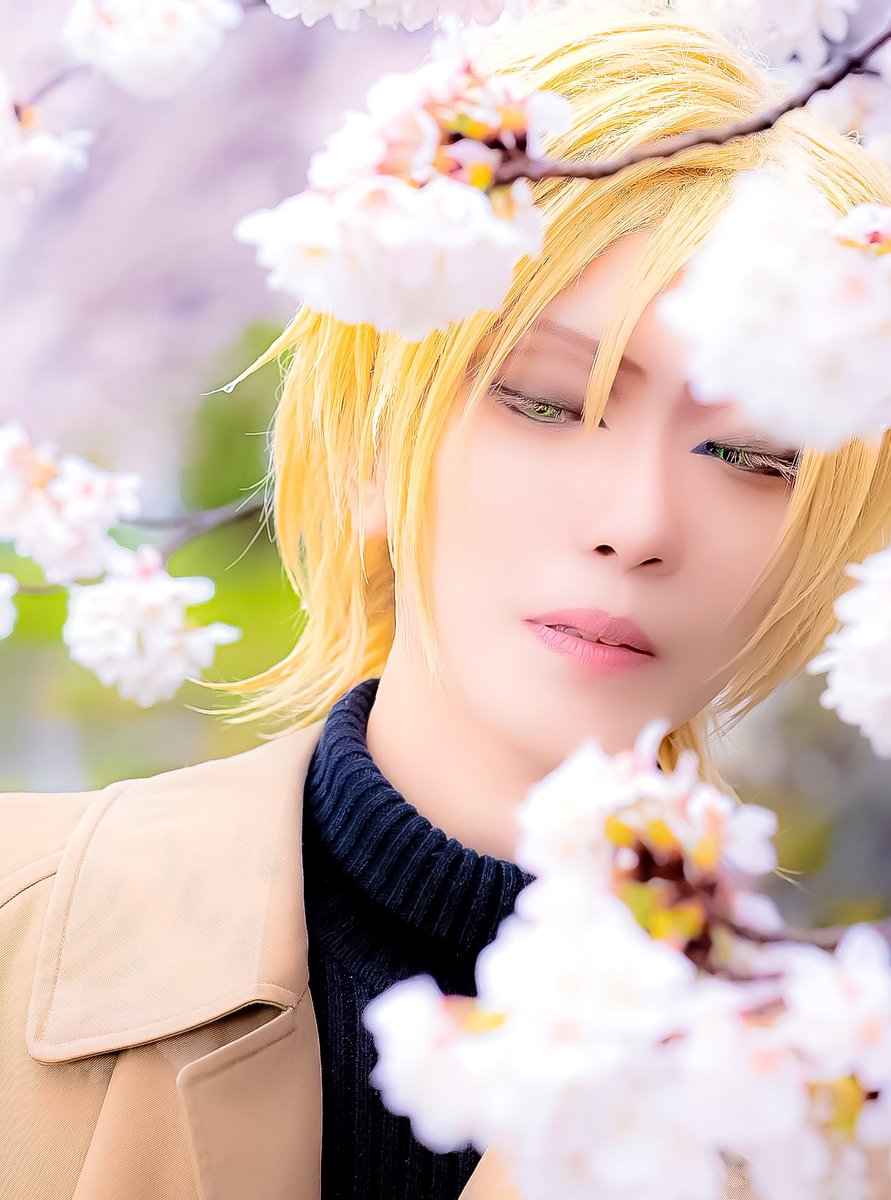 【Cosplay】 BANANA FISH/Ash Lynx 淡い春の記憶 ・ ・ ・ ・ ・ まつげの間から、グリーンアイズが ちらりと見えているのがすごく好きなんですこれ 📷@sira_hasi #コスプレQ2023桜イベント