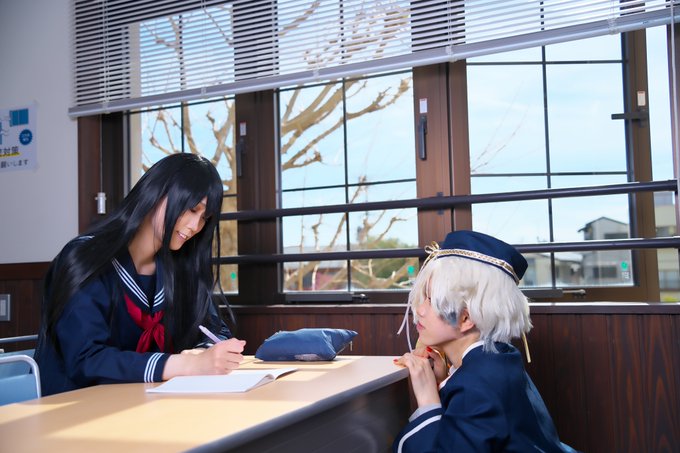 [コスプレ/刀剣乱舞] ⚠️顔有り審神者 あるじさま?何を書いているのですか? 早く遊びに行きましょう うーん…よく分かりません… 五虎退極(@nayuta__cos ) photo(@kamizuki_m ) #コスメルin旧二葉小
