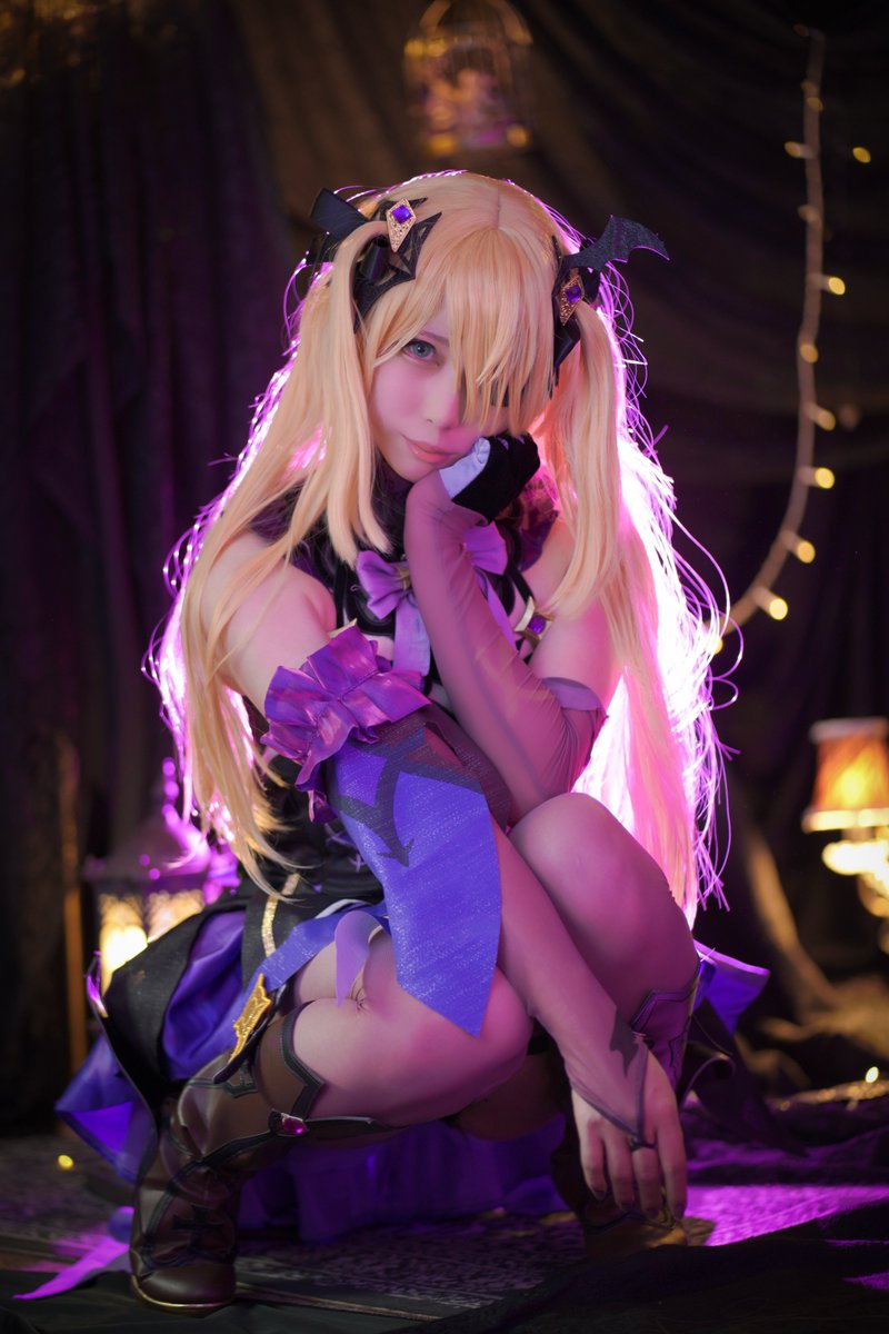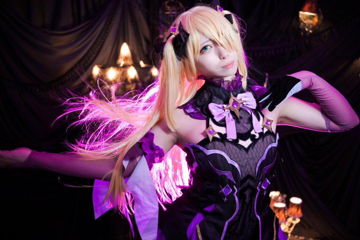 【作品名】 原神 【キャラクター名】 フィッシュル 【一言】 雷元素キャラなので、紫のライトを当ててもらいました。 少女キャラっぽく、メイクはあまり濃すぎないようにメイクしました。 📸 @akasora0208 #コスモスナップ011 #COSPLAYMODE