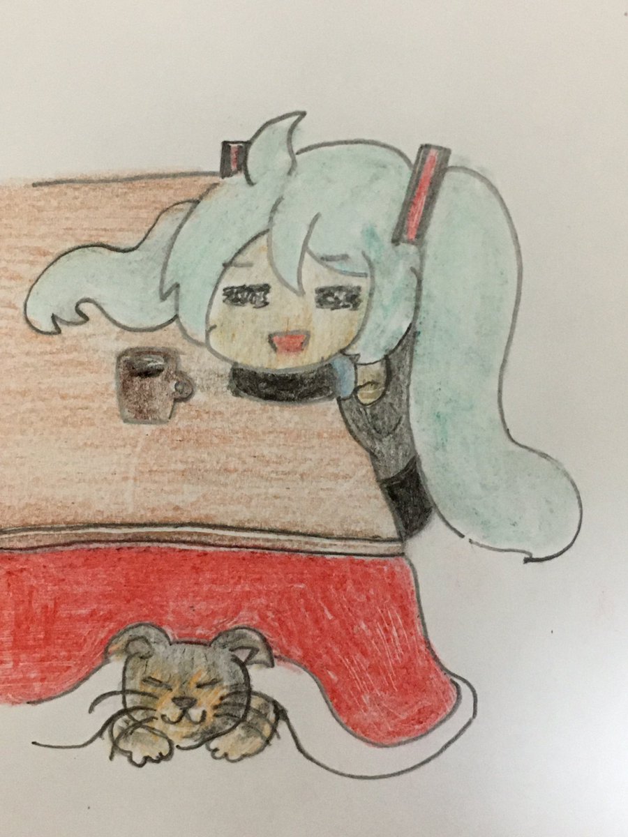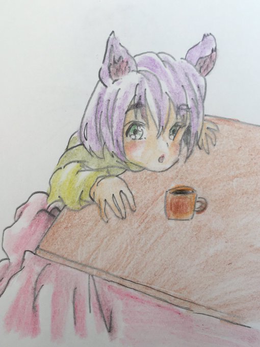 コタツに入ろうか迷ってるネコかわいいよな 本当はタコ系なのに頭のコブともじゃもじゃだけで龍の子孫だと思ってるヤツです。 #イラスト好きさんと繋がりたい #絵描きさんとつながりたい #オリキャラ #タコ #龍 #子孫 #ネコ #コタツ