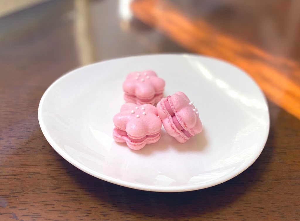 カービィの「くるまほおばりケーキ」 …のマカロン。 まんなたぬきさんの動画を見て 私も作りたい!と思って🤭 ケーキでなくて敢えてマカロンでやってみました☺️ バランス等、無理が出てますが💦 ※レシピは、ネコノメさん、オノマトさん、まんなたぬきさん #コッタ #星のカービィディスカバリー