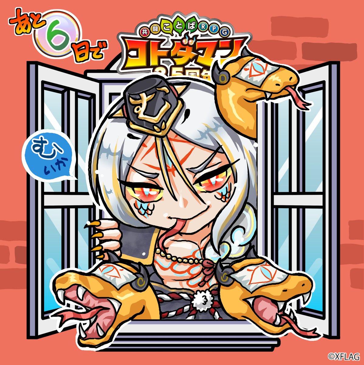 あと6日!みんなのトラウマ 6マタのおろちだよ~ 描くの大変だったけど柄たのしかた・・・ #コトダマンさんてんごッ周年イラスト #コトダマーと繋がりたい #コトダマンイラスト #コトダマアート