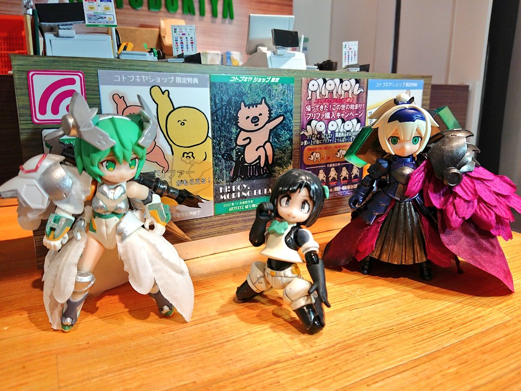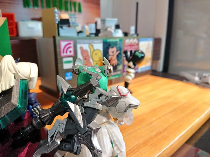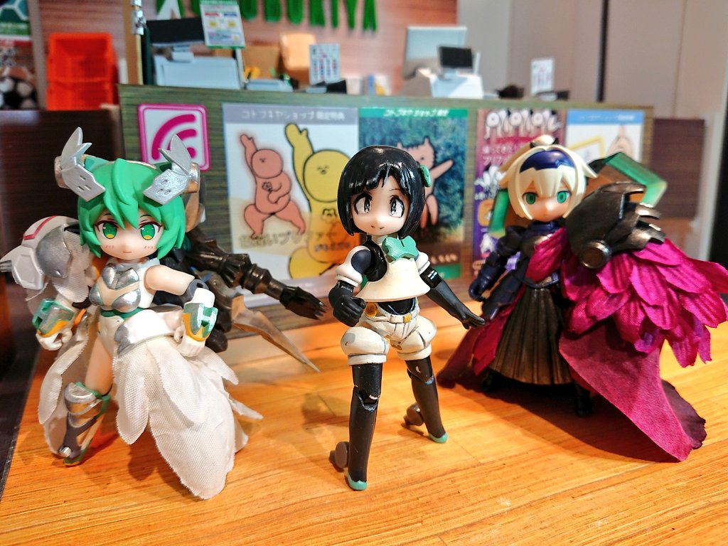 #デスクトップアーミー #コトブキヤ立川撮影コーナー ブロン「見かけないD-phoneですね」 ノアール「小さい・・・可愛い」 そういう訳で、維原ひめさん(@Hime2c)と観光を楽しませていただきました。ひめさんありがとう!