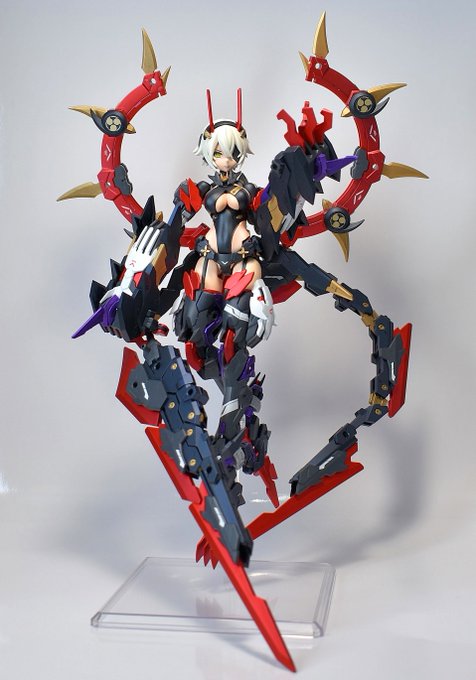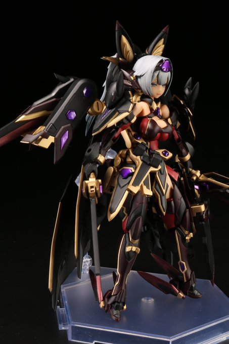 メガミデバイス 皇巫スサノヲ 完成しました。 とにかくひたすら丁寧に仕上げる様心掛け、約二ヶ月とは時間は掛かりましたが納得のいくものが出来ました。 ブンドドは破損が怖いので写真は数点ですが見てやってください。(リプ欄続く) #コトブキヤ70周年 #メガミデバイス #皇巫スサノヲ