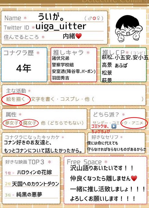 年も明けたのでカード更新しました! たくさんのコナン友だちができますようにー! (♡、RTでのんびりお迎えに行かせていただきます!) #コナクラ自己紹介カード #コナクラさんと繋がりたい #コナン絵描きさんと繋がりたい