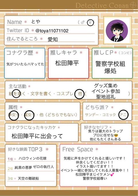 関東在住/成人済みレイヤー DCのお話できるお友達欲しいです✨ 誤反応防止のためRT中心に♡もお迎え行かせていただきます🙏🏻 #コナンレイヤーさんと繋がりたい #DCレイヤーさんと繋がりたい #コナン好きさんと繋がりたい #コナクラ自己紹介カード