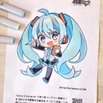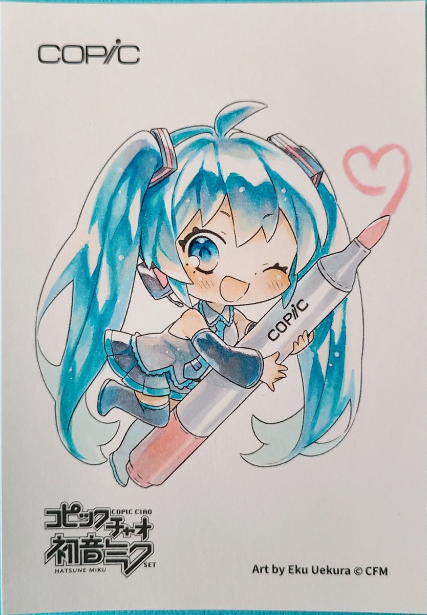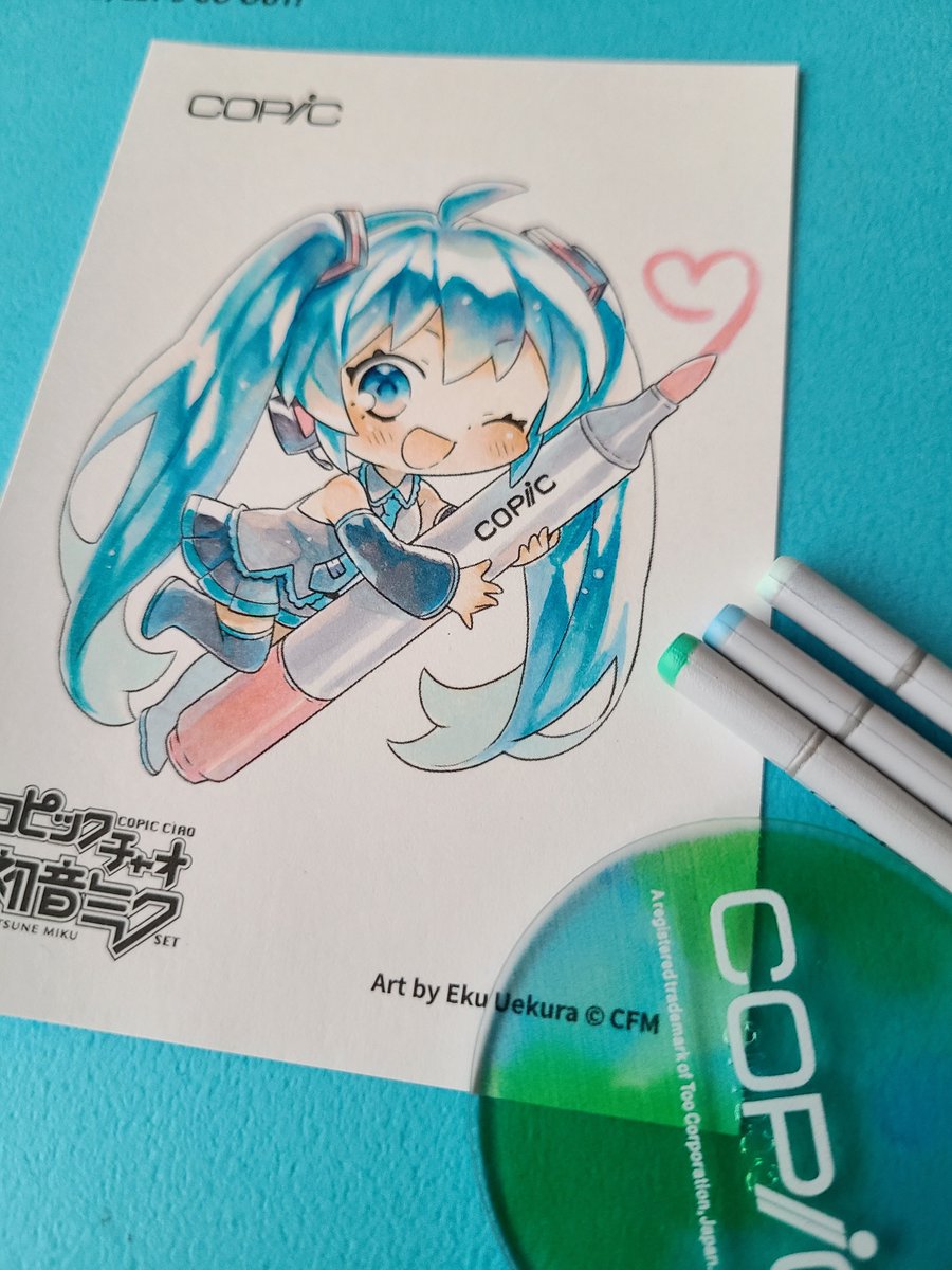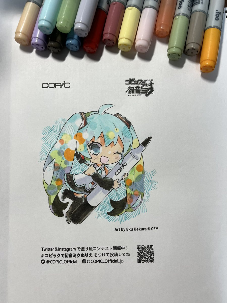 #コピックで初音ミクぬりえコンテスト 今回はセットのコピックチャオ5色だけで塗りました✒️ 0番やマルチライナー、ホワイトも使用しませんでした! 濃いめに塗ったので紙の白さが引き立ちます✨️ 2枚とも線画が可愛いので塗るのも楽しくなります( *´꒳`*)