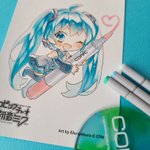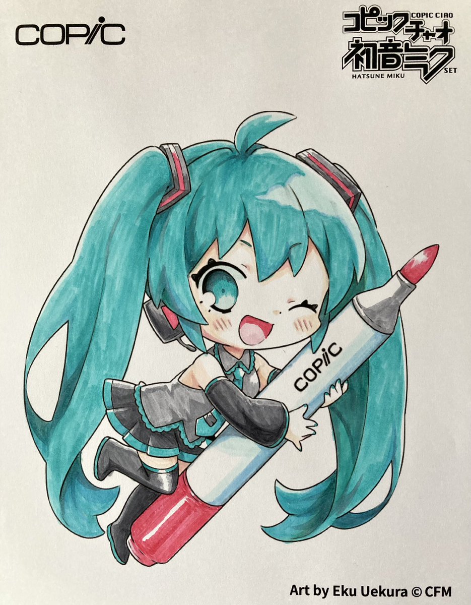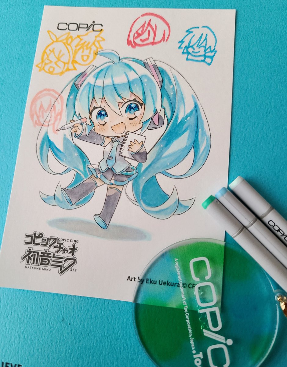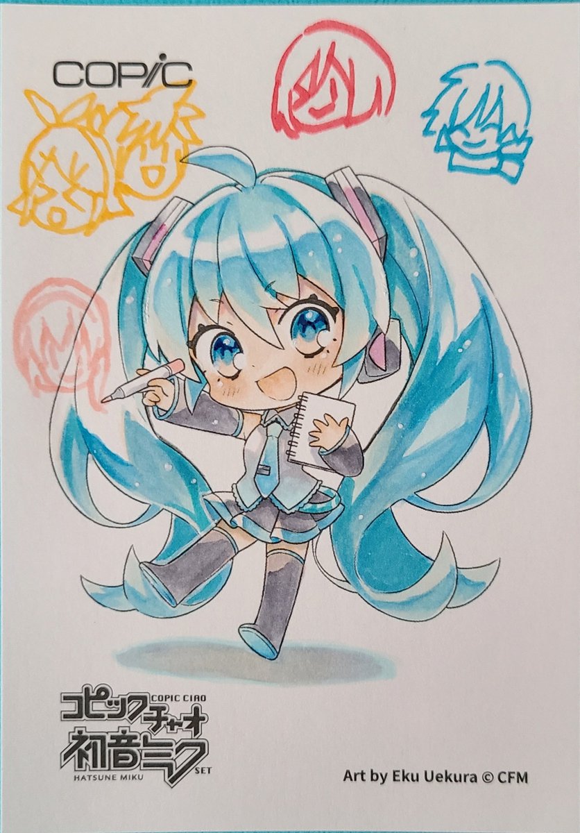 #コピックで初音ミクぬりえコンテスト 今回はセットのコピックチャオ5色だけで塗りました✒️ 0番やマルチライナー、ホワイトも使用しませんでした! 濃いめに塗ったので紙の白さが引き立ちます✨️ 2枚とも線画が可愛いので塗るのも楽しくなります( *´꒳`*)