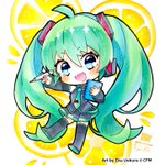 #コピックで初音ミクぬりえコンテスト コピック公式様の雪ミクと桜ミクカラーで塗っていたのが可愛かったので、アレンジミクさんで色変更させて頂きました🌼 小物を書き足して向日葵ミクさん🌻 ペン先のグラデーションが自分好みに仕上がりました✨️