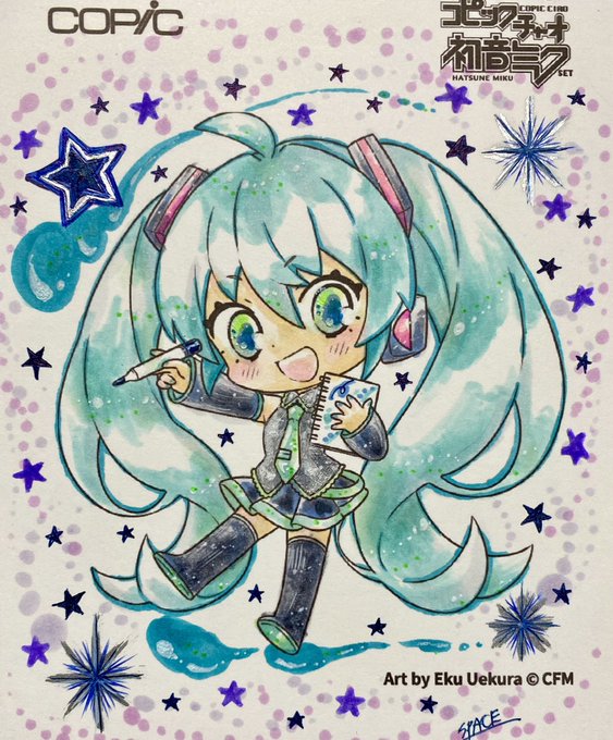 上倉エク 様の線画を塗りました☺️ お星さま たくさん~⭐️✨✨ #コピックで初音ミクぬりえコンテスト #コピック #コピックチャオ #イラスト twitter.com/COPIC_Offici…