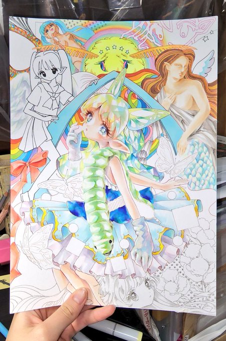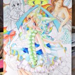 今月は十数年ぶりにコピックで描いてコピックアワードに応募したのでした😳 ケント紙に油性ボールペンとコピック、仕上げに金のアクリル インクダマをティッシュでこまめにふきながら、油性ボールペンで輪郭を描いてます😳 #今月描いた絵を晒す #コピックアワード #copicaward2022 #コピック twitter.com/nukopin/stat…