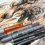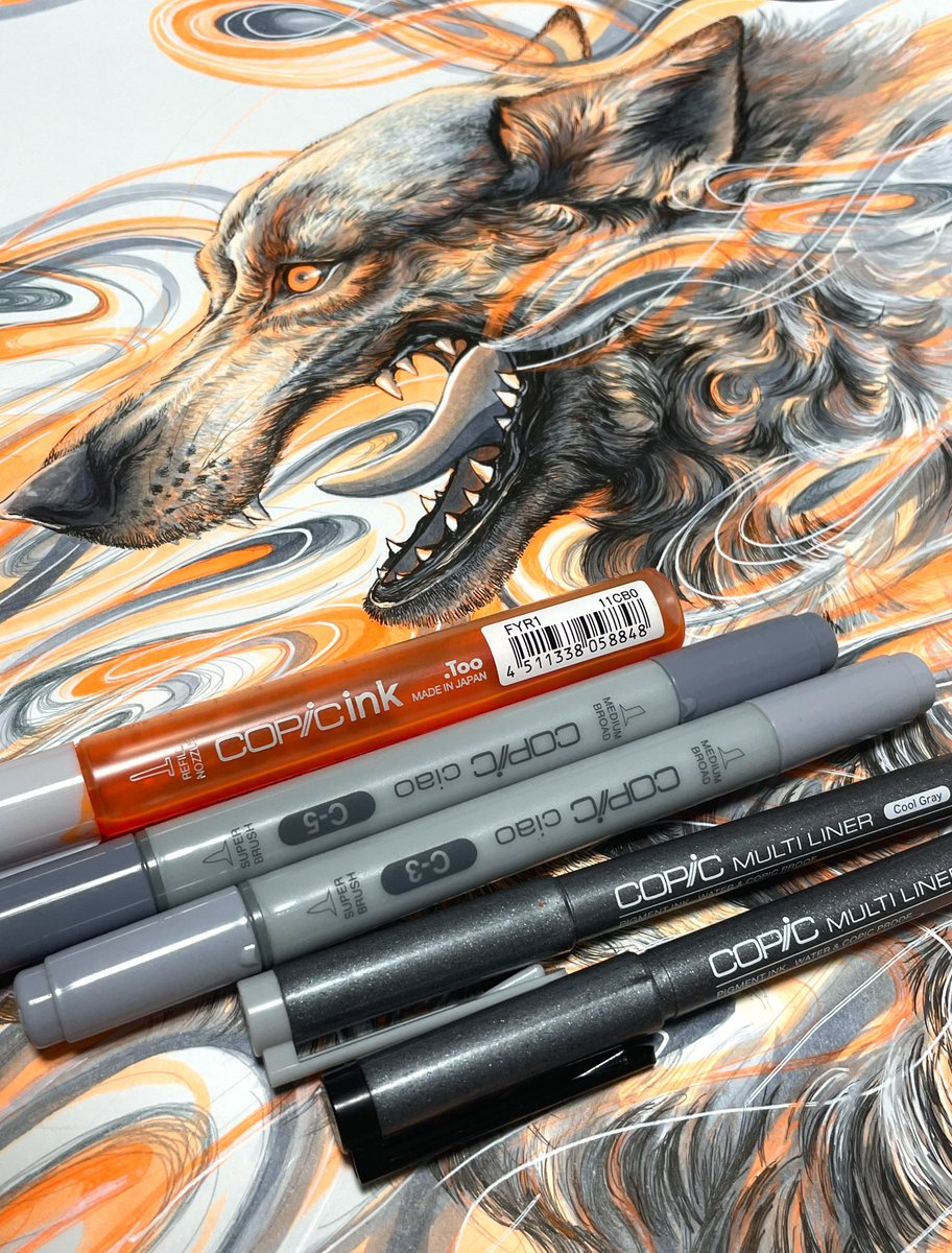 コピックのオレンジ(FYR1)がとにかく大好きなんだけど美しすぎて写真じゃ再現しきれないからスタッフさんに原画を生で見てもらえて嬉しい~(*‘ω‘ *) このグレー(C3.C5)も大人っぽくてかっこいいのよねぇ…… #コピック #コピックイラスト #イラスト #コピックアワード2022 #絵 twitter.com/COPIC_AWARD/…