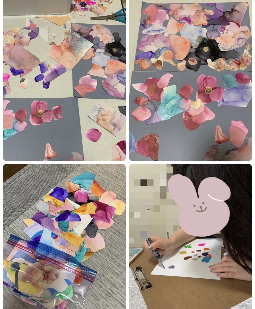 練習した物が溜まってきたので親戚JKとカットして貼り付けてみました 初めてなのに何色も手早く色を落とすチャレンジャー女子 また一緒に描こうね(๑˃ᴗ˂)و♡#アルコールインクアート #コピック #コピックインク