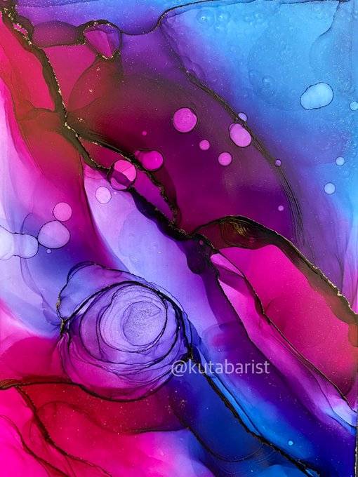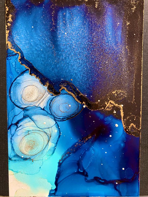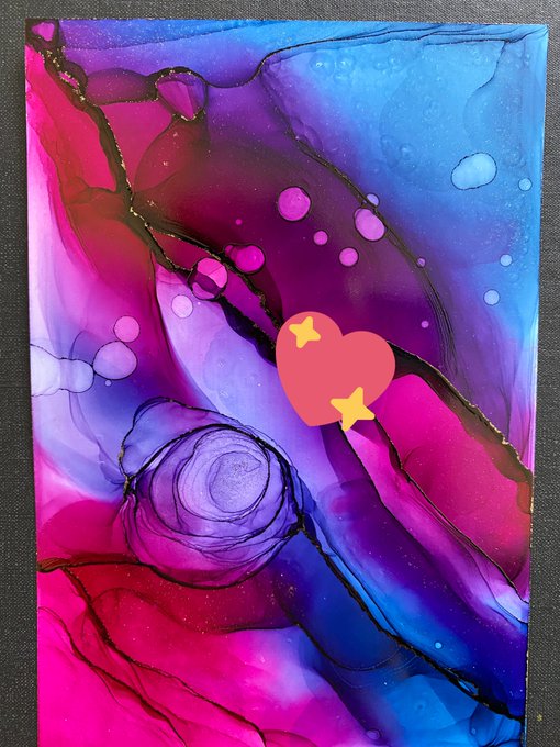 た、楽しかった〜🥹🌟 インク動かしやすくて最高だった✨ お値段が15枚で2000円だから なかなか気軽には使えないけど これは良いアルコールインクアートペーパー👍 #アルコールインクアート #コピックインクアート #コピック #創作アート