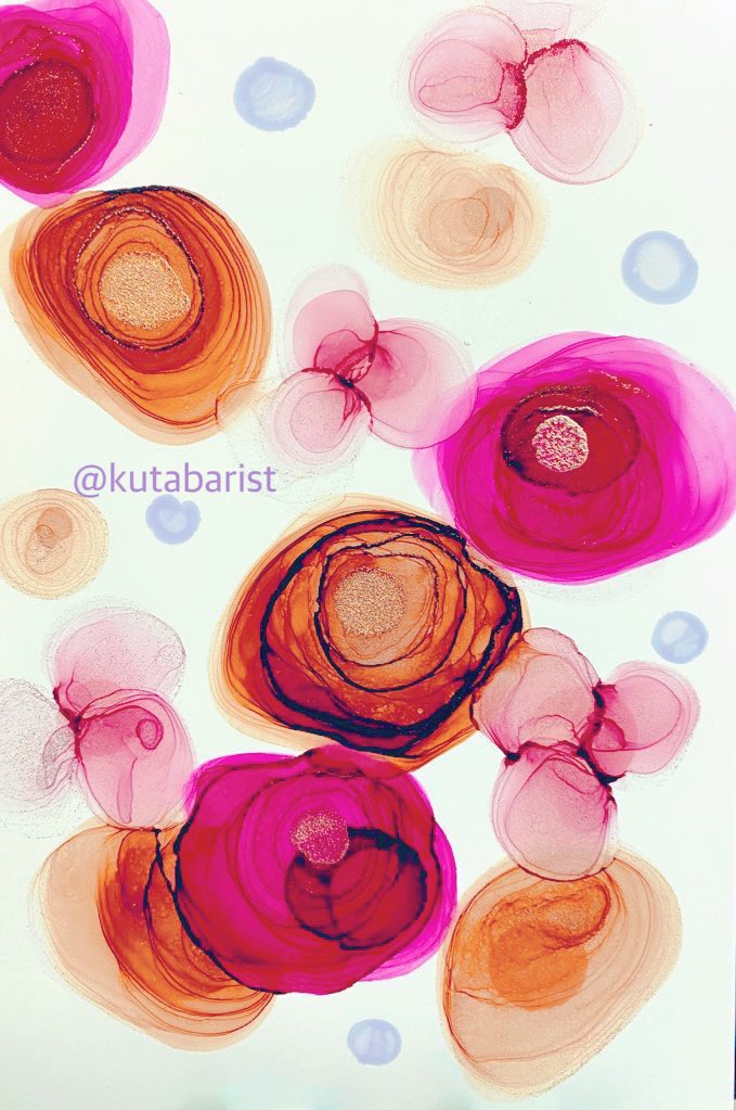 今日のお昼は アルコールインクアートの小花 強化練習してた〜🌷⭐️ 小花むずい… 集中力ないと無理ぃ… 薔薇に逃げがち😂🌹 #アルコールインクアート #コピックインクアート #コピック #創作アート #インク沼